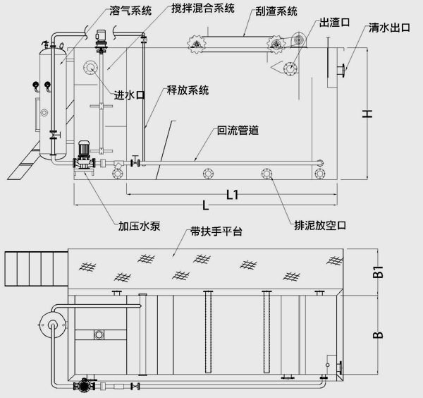 1、在加壓條件下,空氣的溶解度打,供氣浮用的氣泡數量多。能夠確保氣浮效果;